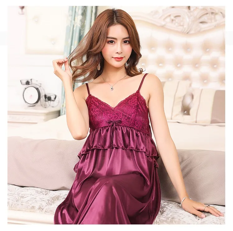2022 Summer Silk Satin Sexy Lace Lingerie Spaghetti Strap Nightgowns For Women Home Dress Sleepwear Night Gown Nightdress Nighty Aliexpress
